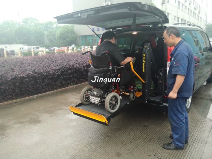 商務車載型無障礙升降平臺采用鋼結構平行四邊形結構,液壓驅動,結構新穎,外型美觀,適用于多種類型車輛。平臺前后各裝有安全翻板以防輪椅車在提升過程中滑落,平臺設有線控按鈕,便于使用者方便操作,在汽車內部裝有手動控制手柄,在升降平臺斷電或電控故障時通過手柄人工機械操作平臺升降。設備收藏于車廂尾部,體積小,不影響車輛使用.本產品結構新穎,外形美觀,適用于多類型的商務車、面包車、輕客等。