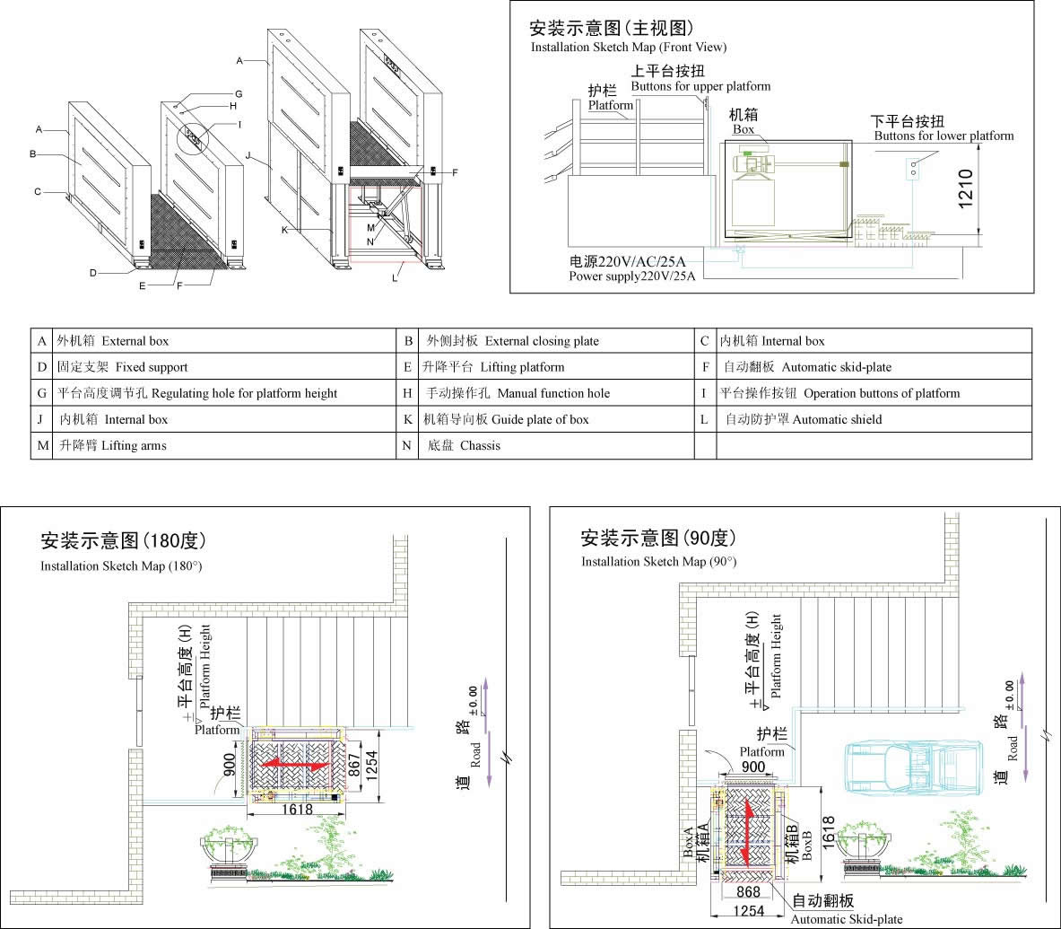 H型無障礙升降平臺采用鋼結構垂直導向系統,螺桿驅動,升降平穩安全,外部采用鋁板靜電噴塑機箱、面板、外型高檔。直接安裝于地面,無需土建配套地坑,施工簡便,產品放置戶外不易積水,不易生銹,維護簡便。